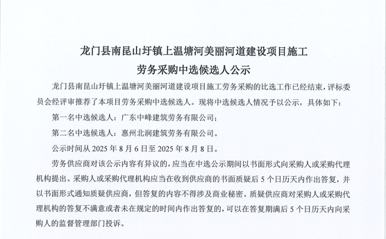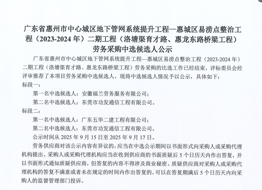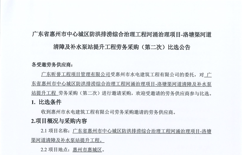 惠州市水電建筑工程有限公司勞務供應商庫擴庫評審結(jié)果公示……